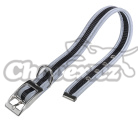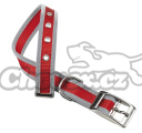 Nylonový obojek s kovovou sponou obšitý reflexní páskou.