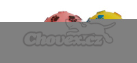 Míček s reliéfem malých tlapiček, prům. 7,5 cm, oblíbená vinylová hračka s pískátkem.