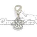 Přívěšek na obojek ve tvaru tlapky vykládaný kamínky. Přívěšek pomocí karabinky můžete připnout kdekoliv.