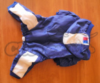 Teplá, nepromokavá kombinéza s flísovou podšívkou. V pase, délce a nožičkách na vnitřní straně stehen je gumové lanko, které jde utáhnou a přizpůsobit podle velikosti pejska. Zápínání na spodní straně na tři patenty.
