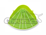 Plastová rohová toaleta pro králíky a morčata, plastový rošt, karabiny na připnutí ke kleci, rozměr 18×18×25 cm, většinou dostupné v těchto barvách: zelená, oranžová, šedá