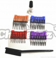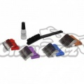 6 dílná souprava : 4 nasunovací plastové hřebeny s kovovými zuby, velký čistící kartáček a olejnička se speciálním olejem na střihací hlavice