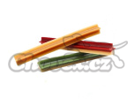 Dentální pamlsek ve tvaru dvoubarevné tyče.